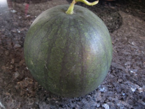 ตั้งแต่ปลูกแตงโมมา มีปีนี้ที่ได้แค่ลูกเดียว ปกติจะได้ 10 กว่าลูกขึ้นไป ลูกละ 10 กว่าโล แต่ฤดูร้อนที่ผ่าน ไม่ร้อนเท่าที่ควรจะเป็น เลยได้มาแค่ลูกเดียว หนักไม่ถึงสองโล