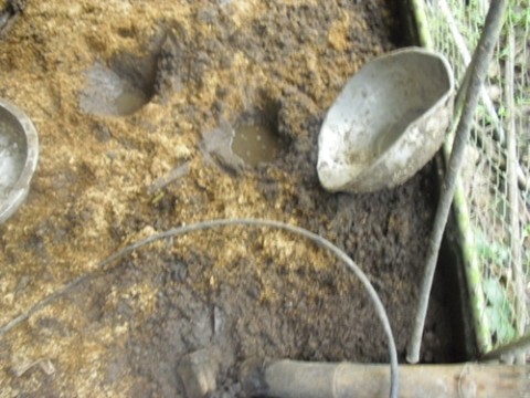 ขุดหลุมดักฉี่่หมู เอากาละมังครอบไว้