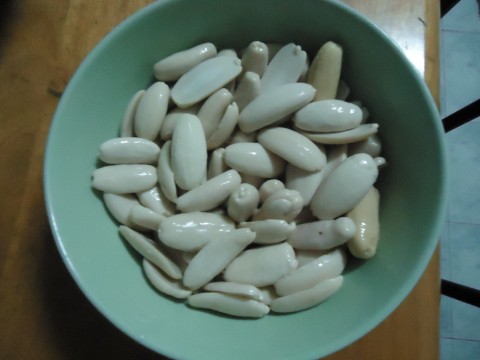 นำลูกประดอง ไปแกะเปลือกออกก่อนค่ะ วิธี คือเอาส่วนที่แหลม ๆ ตั้ง เคาะด้วยสากกระเบือค่ะ