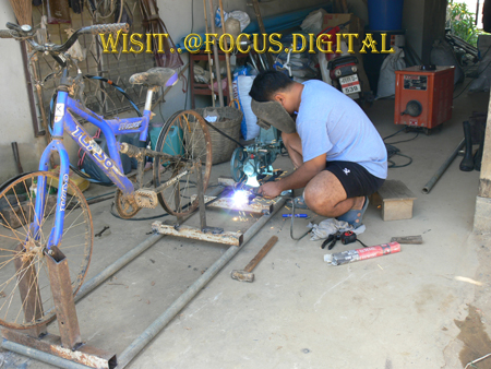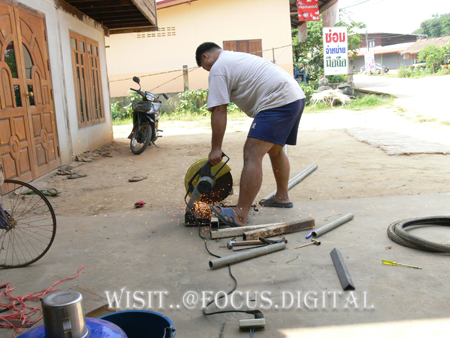 ขั้นตอนแรกไปยืมเครื่องมือมาก่อนครับ ตู้เชื่อม ไฟเบอร์ตัดเหล็ก ฉาก ค้อน ฮ่า ๆ ไม่มีสักอย่างเครื่องมือมีเวลา 1 วันต้องทำให้เสร็จครับ ญาติ ๆเป็นช่างก่อสร้างพอดีเลยได้โอกาส ช่างแบบเดา ๆ อย่างผม อิอิอิ