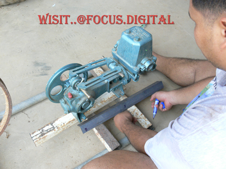 วัดความห่างของแท่นจับปั๊มชัก กับเหล็กฉาก แล้วนำไปเจาะเซาะร่อง