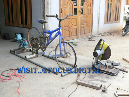 1.ฐานวางจักรยานปั่นน้ำ ผมใช้ท่อประปาขนาด 1.5 นิ้ว (เมื่อก่อนเป็นเสาทีวี) ตัดเป็น 4 ท่อน