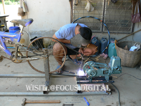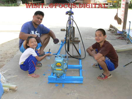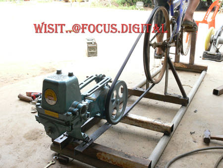และแล้วก็ได้เวลาลงมือทำจักรยานปั่นน้ำให้เสร็จเสียที หลังจากที่เจอโรคเลื่อน มาหลายรอบแล้วพอดีมีเวลาว่าง ลูกค้าหาย(สงสัยกลัวน้ำท่วม อิอิ)แต่ที่นี่จังหวัดอุดรธานีคงไม่ท่วม ฮ่า ๆๆๆ เลยได้ฤกษ์งามยามดีจะได้ทำเสียที (ข้ออ้าง อิอิ) จากทีแรกว่าจะเอาจักยายสีแดงที่มีเกียร์ผ่อนแรงมาช่วยด้วย เลยเปลี่ยนแผนแบบรวดเร็ว กลายเป็นจักรยานสีน้ำเงินของหลานที่จอดทิ้ง ๆ ไว้ ได้โอกาสขอเลย ฮ่า ๆๆๆๆ ลุงขอเด้อ..อิอิอิ