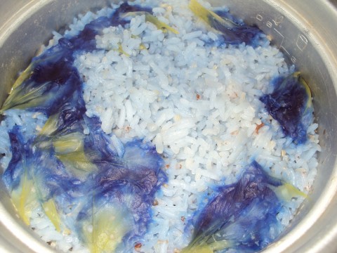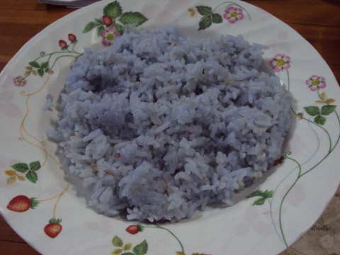 ข้าวที่หุงจากน้ำสีดอกอัญชัน