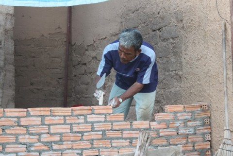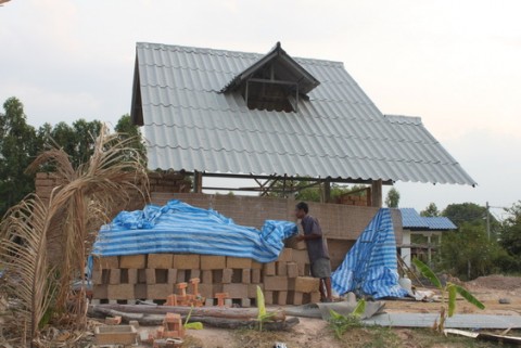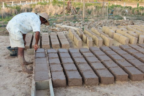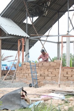 ก้อนดินที่หนักไม่ต่ำกว่าก้อนละ 10 กิโลกรัม ค่อยๆ ถูกลำเลียงไปก่อ โดยพ่อผม