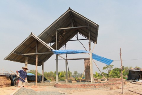 พ่อกำลังเทคาน ส่วนโครงสร้างหลังคา ต้องจ้างช่างครับ