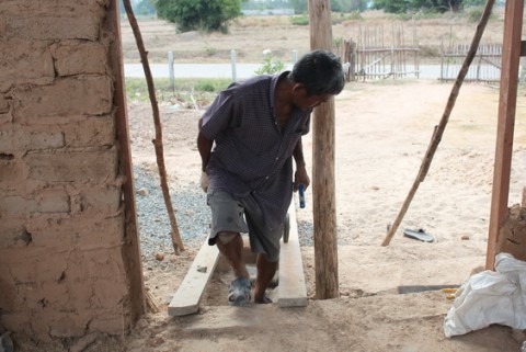 ชายที่กำลังจูงวัวคือพ่อผมเองครับ พ่อมีวัวอยู่ประมาณ 5-6 ตัว ที่ต้องดูแล ปีที่ผ่านมา พ่อทำงานค่อนข้างหนัก เพราะต้องแบ่งเวลามาช่วยผมทำบ้านดิน พ่อช่วยทุกอย่างครับ ตั้งแต่ปรับพื้นที่ ทำก้อนดิน เทคาน ก่อก้อนดิน ฉาบ และอื่นๆ อีกมากมาย จะว่าไปแล้ว หากไม่มีพ่อมาช่วย ความฝันที่อยากมีบ้านดินก็คงเป็นไปได้ยาก เพราะผมมีเวลาแค่วันหยุดหรือเสาร์อาทิตย์เท่านั้น