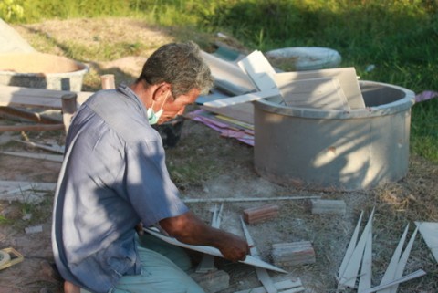 พ่อกำลังทำก้อนดิน ซึ่งใช้เวลาไม่ต่ำกว่าสามเดือน กว่าจะได้ตามจำนวนที่ต้องการ