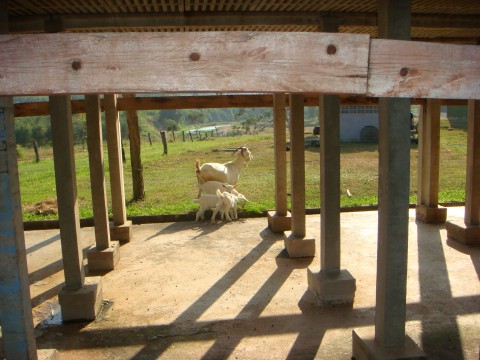 ดูแพะแม่ลูกค่ะมาเดินเล่นใต้ถุนบ้าน
