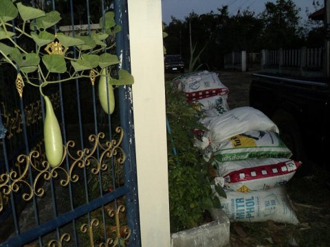 วันนี้ได้ใส่ปุ๋ย 2 ข้างกำแพง วิธีใส่ก็ยกไปทั้งกระสอบค่ะ ใส่เต็มที่ กอใหญ่ ก็ครึ่งกระสอบ กอเล็กก็3กอ1กระสอบ พรุ่งนี้ก็จะรดน้ำ แบบเต็มที่ รดมากๆแบบที่รุจทำ เพราะ ดินทางอิสานช่วงนี้ แห้งมากๆ ถ้าไม่ให้น้ำ ปุ๋ยที่ใส่ลงไปก็จะแทบไม่มีผล เพราะอีกนานกว่าจะถึงหน้าฝน