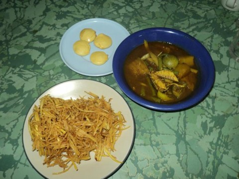 มากินข้าวเย็นกันค่ะ วันนี้ทำแกงไตปลา เหนาะลูกเนียงน้องพา มีขนมรังนกด้วย ลูกขอกินก๋วยเตี๋ยว เพราะลูกไม่กินแกงไตปลา ไม่กินตำปลาร้า กินแต่ตำไทย ไม่กินเผ็ด โอ้ย...ไม่รู้เลี้ยงลูกมายังไง ไม่มาทางแม่เลย