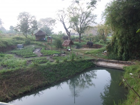 ถึงแล้วค่ะ เอารถไปจอด มองไปข้างหน้าชอบมุมนี้จัง หมู่บ้านช้างที่รีสอร์ท คนเลี้ยงช้างเค้าปลูกผักค่ะ ชอบๆๆ