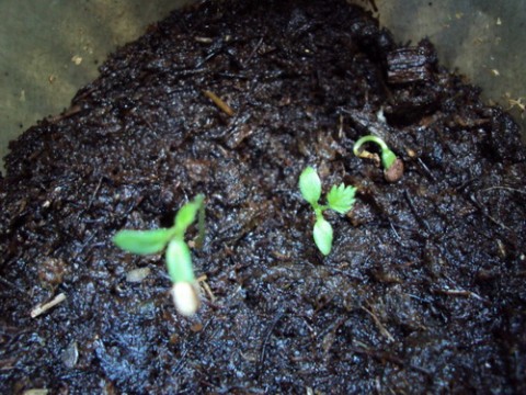 นี่ก็กีวี่อีกถุงหนึ่ง ที่เพิ่งเริ่มงอก ต้องรอดูกันต่อไปว่าโตขึ้นหน้าตาจะเหมือนต้นข้างบนหรือไม่ ถ้าเหมือนกันคงได้เฮกันคราวนี้ สำหรับเมล็ดพันธุ์ได้รับจากคุณอ๊อด (oddzy) USA เมื่อปลายปี 53
