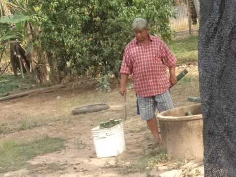 ถั่วพูของแม่ถูกไก่กินเหลือแต่เถากับค้าง แต่ใบไม่มี อิอิ
