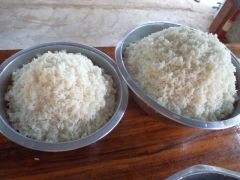 แม่คั้นกะทิ กรอกข้าวใส่กระบอก