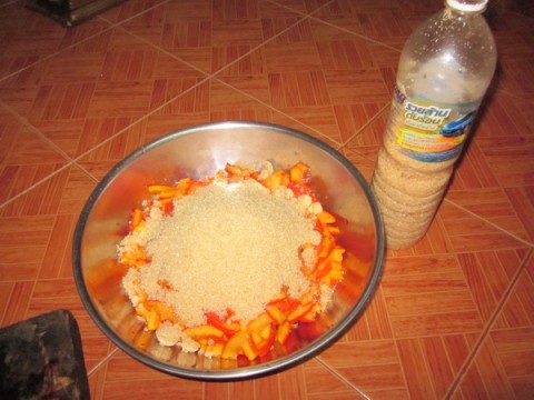 ถ่ายของเดิมมาใส่ขวดเล็ก สักเกตุว่าตอนแรก เนื้อฟักข้าวจะลอยอยู่ข้างบน แต่พอเข้าเดือนที่สองเนื้อฟักข้าวจะจมน้ำนอนอยู่ข้างล่าง..