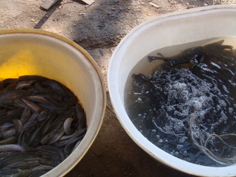 เขาเอาปลาดุกมาส่งค่ะ...วันละประมาณ 100 กก. วันไหนขายดีก็สั่งเพิ่ม ถ้าขายไม่ดีก็ลดลงหน่อย...ปลาสวย แข็งแรง เวลาจะจับต้องงดอาหารไว้ก่อน 1 วัน บ่อที่เลี้ยงเป็นดินเหนียว สีเหลือง ๆ เรียกว่าดินอะไรก็ไม่รู้ แต่พ่อค้าปลาหัวใส จะไปเอาดินที่ว่านี้มาใส่บ่อที่บ้าน เอาปลามาลงไว้ คืนเดียวปลาสีดำ ๆ ไม่น่ากินก็เปลี่ยนเป็นสีเหลือง น่ากินแล้วค่ะ...บอกว่าปลาบ้านใคร ๆ ก็เชื่อแล้ว เพราะสีสวยมาก เพิ่มมูลค่า ขายก็ง่ายค่ะ...กลเม็ดเคล็ดลับของพ่อค้าปลาค่ะ อิอิ...