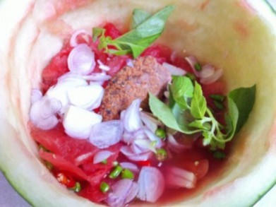 สวัสดีค่ะ คุณลุงปาโล นึกว่าเปลืองแตงโมที่ปลอกเปลืองสีเขียวออกแล้วเอาเนื้อเปลืองสีขาวมาสับแบบมะละกอเสียอีก แล้วตามด้วยกุ้งแห้งทอด ถั่วทอด ใบสะแหนฯลฯ แต่ม่ะช่าย สงสัยอร๋อยจริง หมดพุงกางเลยยย :confused:
