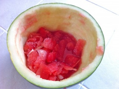 เช้าวันนี้ .... ม.ค. 2555 ขณะข้าพเจ้าเดินเข้าไปในครัว ..เห็นลูกกำลังเตรียมแตงโม ใส่ตู้เย็น สำหรับมื้อกลางวัน ... เขาผ่าแบบหั่นท่อน ... ตอนที่ข้าพเจ้าเห็น แตงโมท่อนหัว ถูกเขาสำเร็จโทษ เป็นชิ้น ๆ ไปแล้ว และกำลังเตรียม จะจัดการกับท่อนที่เหลือ ..จึงรีบบอก