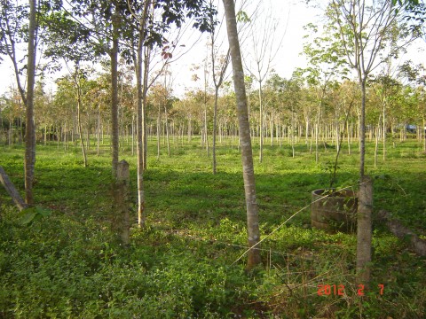 ด้านนี้คือต้นยางพารา อายุ 6 ปี ปลูกระยะ 3 x 8 เมตร