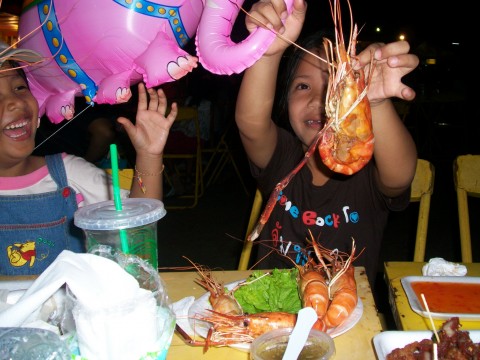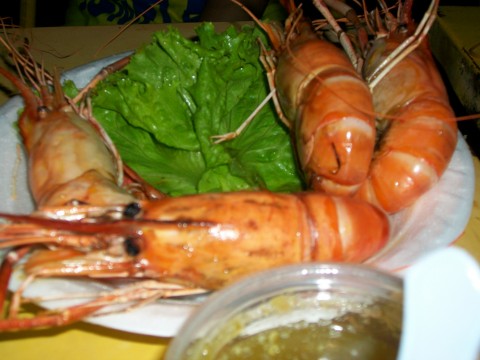 กุ้งเผา+ปลาเผาพร้อมน้ำจิ้มแซ่บๆ รูปสุดท้ายสองสาวน่ารักมากค่ะ