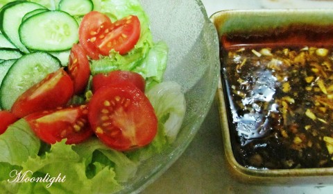 ส่วนน้ำหมักมังคุด ลองชิมดู รสออกเปรี้ยว และเฝื่อนนิดๆ เลยปิ๊งไอเดียว่า น่าจะลองนำมาทำน้ำสลัดดู ส่วนผสมมีดังนี้ น้ำมันมะกอก ซีอิ๊วญี่ปุ่น น้ำหมักมังคุด (ผสมน้ำผึ้ง) ประมาณอย่างละครึ่งถ้วย พริกไทยดำ กระเทียมสับละเอียด