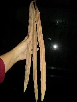 ตอนเป็นฝักอ่อน สวยแปลกดีเหมือนกัน เอามาต้มจิ้มน้ำพริก รสออกหวานอ่อนๆ อร่อยดี