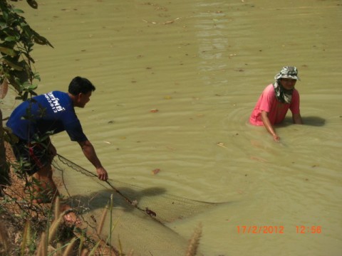 บ้านเพื่อนมีบ่อปลาก็เลยลงจับปลาแบบวีถีบ้านๆๆใช้แห