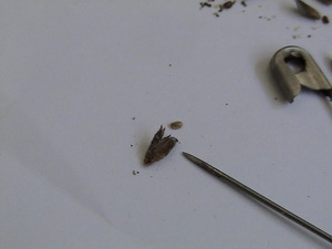 การใช้ปลายเข็มกลัด(ขนาดสองนิ้ว)สะกิดเบา ๆ ที่ดอกแห้งของลาเวนเดอร์