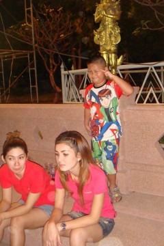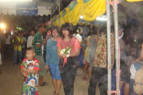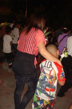 เด็กน้อยบางคนก็แสดงความเจ้าชู้ให้เห็นตั้งแต่เด็ก....เห็นพี่เขานุ่งสั้นมาเวียนเทียน กลัวยุงกัด จะไปไล่ยุงให้ (ไม่อยากบอกว่าไม่ควรนุ่งสั้นมาสถานที่ศักดิ์สิทธิ์แบบนี้) พี่เขาสวย สมควรให้อภัย...แค่ตักเตือน