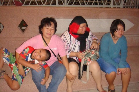 นั่งพักเหนื่อย ป้าเหนื่อย...ต้องนวดขาให้....ประจบหน่อย เดือนเมษาป้าจะพาไปเที่ยวทะเลอีก....
