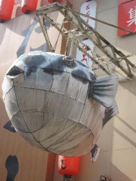 ร้านนี้น่าจะขายอาหารที่ใช้ปลาปักเป้ามาทำอาหาร