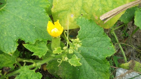 ฟักเขียวต้นนี้ไม่มีใครปลูก อาจจะเป็นเมล็ดท่ี่ตกหล่นจากหลังคาตอนเอาเมล็ดไปตากบนหลังคาครัว