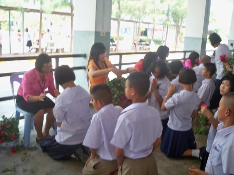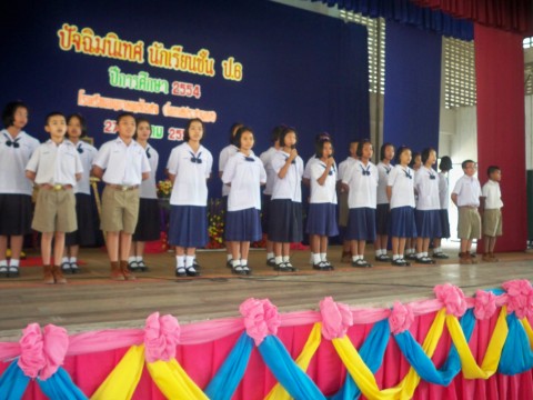 บรรยากาศประมาณนี้เกิดขึ้นทุกปี เด็ก ป.6 รุ่นนี้สร้างความประทับใจให้คณะครูทุกท่าน ขยันและช่วยงานโรงเรียนตลอด ถ้าเราให้ความรักเด็กๆเหมือนลูกเหมือนครอบครัวของเรา ครูก็มีความสุขในการสอนเด็กก็มีความสุขในการเรียน ขอให้เด็กๆประสบผลสำเร็จทั้งการเรียน การทำงานและชีวิตครอบครัวค่ะ