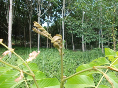 เดินเข้าไปอีกสวน เป็นสวนยางพารา ยังไม่เปิดกรีด เจอกล้วยไม้ป่า (กล้วยไม้ดิน)