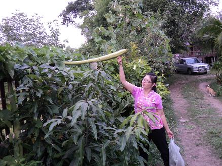 โชว์บวบอีกรอบ ยาวมาก วันนี้เอาเมล็ดที่ได้จากวารินวันก่อนไปให้ บอกว่าเห็นแล้วเบื่อมาก มีบวบ ไม่รู้กี่สายพันธุ์ วัันนี้เก็บให้พี่วิไปถุงใหญ่เลย พี่วิเคาะมดออกอยู่ ให้บวบ แถมมดแดง