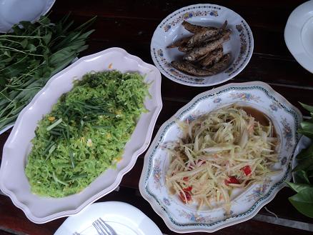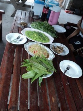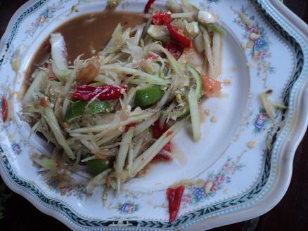 ส้มตำครกแรกหมด พี่วิบอกขออีกครก ก็หมดอีกค่ะ มะละกอเก็บจากต้นเดี๋ยวนั้นเลย ย่าวรรณทำเร็วมากค่ะ ป้าเล็กรอกินอย่างเดียว