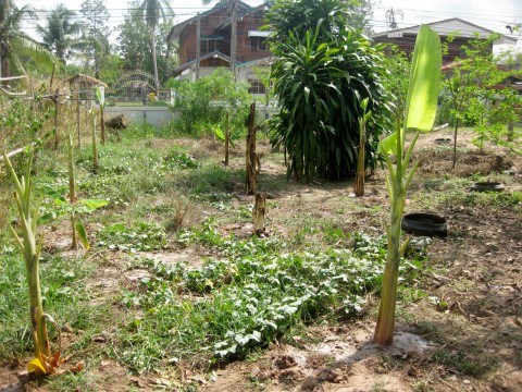 ถั่วรก เอ้ย ถั่วครก ขึ้นเองจากเมล็ดที่หล่น และมันเทศที่ปลูกทิ้งไว้ลามไปทั่วสวน