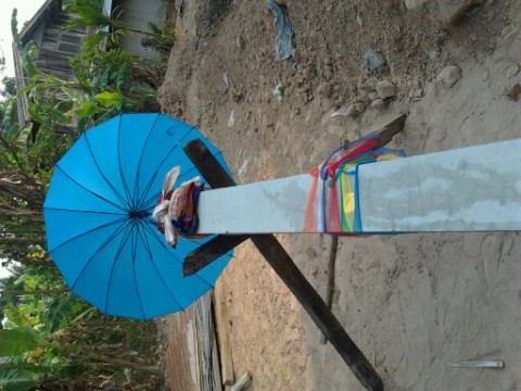 เสาโท ต้องมี อักเก็บด้าย ต้นอ้อย กล้วย ด้ายมงคล แล้วก็ผ้าเจ็ดสี