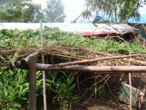 บวบค้างนี้อยู่ในเล้าเป็ดไก่...งามมาก แทบจะไม่เห็นลูก ยอดอวบ ๆ ตัดยอดขายซะเลย