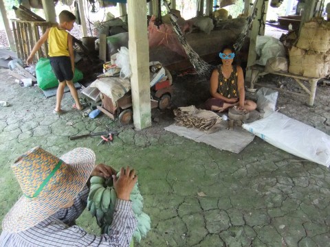 อากำลังเจียนใบตองแห้งอยู่ค่ะ อาชีพเสริมนอกจากทำสวนแล้ว