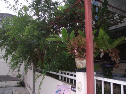 ตอนนี้ก็เป็นป่าดิบย่อมๆไปแล้ว มีทับทิบที่ออกลูกกิ่งแทบหัก ปูกมาสามปี ไม่มีลูกเลยขู่จะตัดทิ้งหากฝนนี้ไม่มีลูก คงกลัวเลยออกซะ ส่วนที่เป็นเถารกๆเป็นชะอม และองุ่นก็ยังไม่มีวี่แววจะออกลูก สงสัยคงต้องใช้ไม้ตาย ท่านใดมีวิธีเด็ดๆแนะนำที่ครับ ส่วนเลขบ้าน ไครจะนำไปแทงหวยได้ ไม่หวง เคยออกหรือเปล่าไม่รุ้ เพราะเจ้าบ้านไม่เคยเล่นหวย..แล้วพรุ่งนี้มาว่ากันต่อ