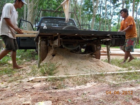 เช้าวานนี้ออกจากสวน พบคนรับซื้อไม้มาแปรรูป เลยนั่งคุยกันพักหนึ่ง