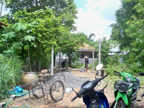 ช่างกำลังก่อสร้างโรงรถกับห้องน้ำ(ปัจจัยหลักเวลามาสวน)