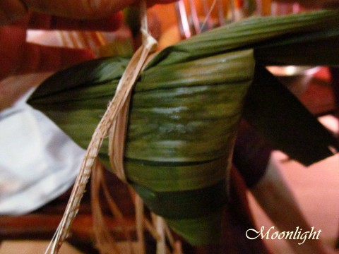 นำไปนึ่งประมาณ 20 นาที สังเกตดูห่อที่ไม่ค่อยสวย คือฝีมือของข้าพเจ้าเองอิอิ แต่แม่บอกว่า ไม่เป็นไร ข้างในอร่อยก็พอ