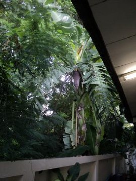 น้ำว้าไส้เหลืองต้นใหม่ค่ะ กอนี้ ยังสมบูรณ์อยู่ ดูๆแล้ว น้ำว้าสายพันธุ์นี้ น่าจะปลูกกับสวนยางได้ เพราะกอนี้โดนต้น ก้ามปู กะถิน บัง แต่ยังออกปลีได้ใหญ่ ประมาณว่า สูงแข่งกัน รอบนี้ ลองดูว่าการเว้นใบเยอะๆ ช่วยสังเคราะห์แสงได้ดีจริงหรือเปล่า