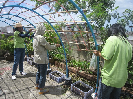อัยย๊ะ มีช่วยทำค้างแล้วยังมีช่วยปลูกด้วย อิอิ ร่วมมือร่วมใจกันดีจัง