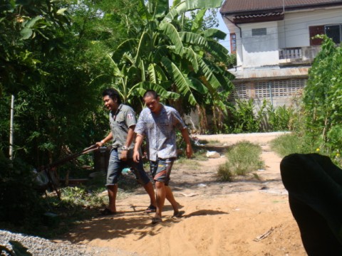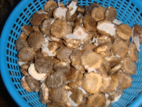 แถมอีกหน่อย..ถึงจะบาดเจ็บ..สาหัส..ก็ต้องทำงานนะคะ..ไม่งั้นไม่ได้ค่าแรง 50 บาท เนี่ย..ต้องขนขี้เห็ดเก่าออกจากโรง ไปใส่ต้นมัน เป็นปุ๋ยให้ต้นมัน ปีที่แล้วใส่ให้ก็งามดี ได้หัวใหญ่สวย มีน้ำหนัก 1 ไร่ ให้ปุ๋ยเคมี 5 กก. ขนขี้เห็ดไปใส่ให้ ได้มัน 5 ตัน กำไรอื้อ!...5555 ราคา มัน 1.30 บ.