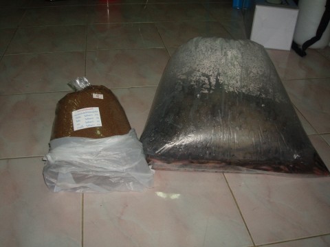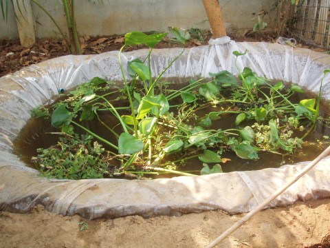 ต่อไปก็ปลูกผักให้ปลาค่ะ จะได้มีอาหารตามธรรมชาติ และเป็นที่หลบภัยหรือหลบแดดค่ะ ใช้ดินที่เก็บไว้มาผสมกับปุ๋ยคอก ตอนนี้มีปัญหานิดหน่อยเพราะว่าครูไม่ได้บอกสูตรไว้ว่าจะใส่อะไรเท่าไรดี พยายามหาข้อมูลก็ไม่มีสุดท้ายก็สูตรตามใจฉันก็แล้วกัน ก็ได้ผลค่ะ แค่ 2 วันแรกผักก็งามเลยค่ะ