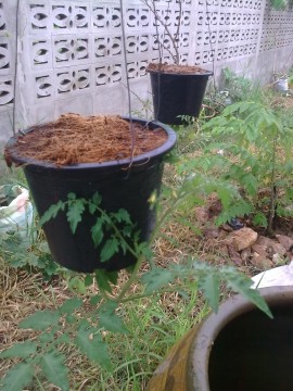 มะเขือส้มปลูกแบบกลับหัว เริ่มออกดอกแล้วค่ะ